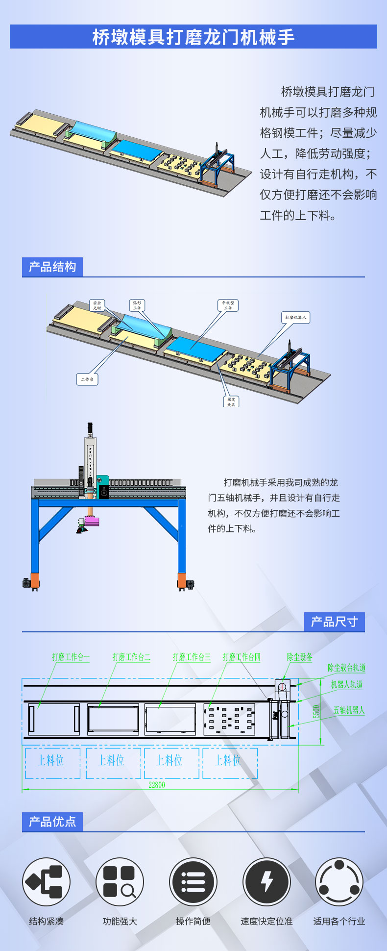 關(guān)鍵詞:打磨機械手 自動打磨 打磨龍門 橋墩打磨 模具打磨