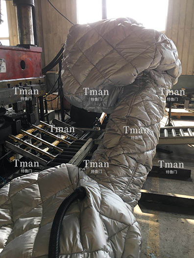 在冷庫和北方的冬季,零下三十度左右氣溫環(huán)境下,會導致機器人運行速度變慢,水管凍裂,機器潤滑油凝固等現象,針對客戶的需求,我司開發(fā)出可加熱,可制冷的恒溫機器人防護服,根據客戶現場需求調整溫度,保障客戶在惡劣的環(huán)境中正常使用。