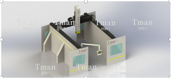 五軸銑孔機(jī)械手,采用傳統(tǒng)機(jī)床與機(jī)器人手臂相結(jié)合的設(shè)計(jì)方式。XYZ軸采用傳統(tǒng)坐標(biāo)式行走方式,可以增加設(shè)備整體剛性,擴(kuò)大工作范圍,4軸、5軸采用機(jī)器人手臂式機(jī)構(gòu),提高了設(shè)備靈活性,多自由度,無死角。